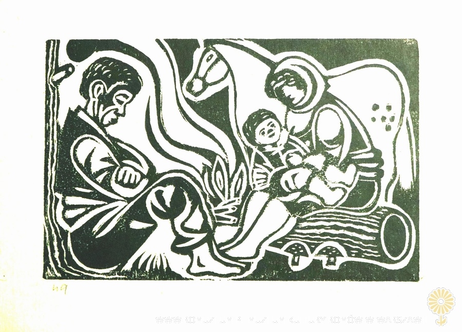 Cikáni, odręczna sygnatura Z. Meel, nr 49, drzeworyt, 13,5x9 cm, circa 1940