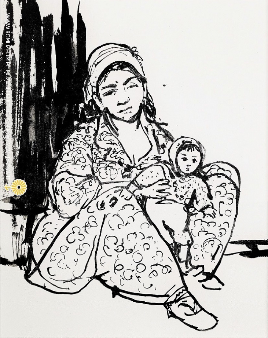 Zigeunerin mit Kind (Macedonia), litografia, Hans Mau, Leipzig/Lipsk 1955