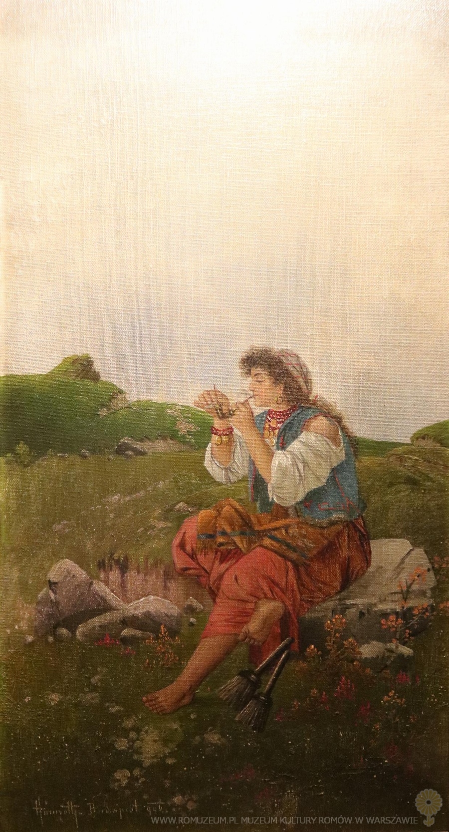 Obok nazwiska – Budapest 906 (?). Stan obrazu dobry, drobne odpryski farby w dolnej części obrazu. Motyw Cyganki z fajką, rozdartą koszulą na ramieniu był popularny w XiX w. przede wszystkim w krajach niemieckojęzycznych.