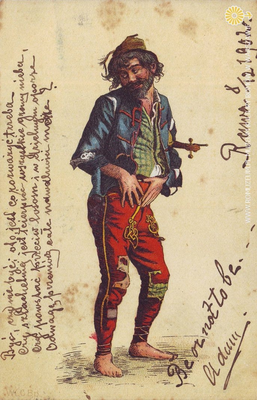 Biedny skrzypek, edit WK C Bp (prawdopodobnie Węgry), litografia barwna, obieg 8 XII 1902
