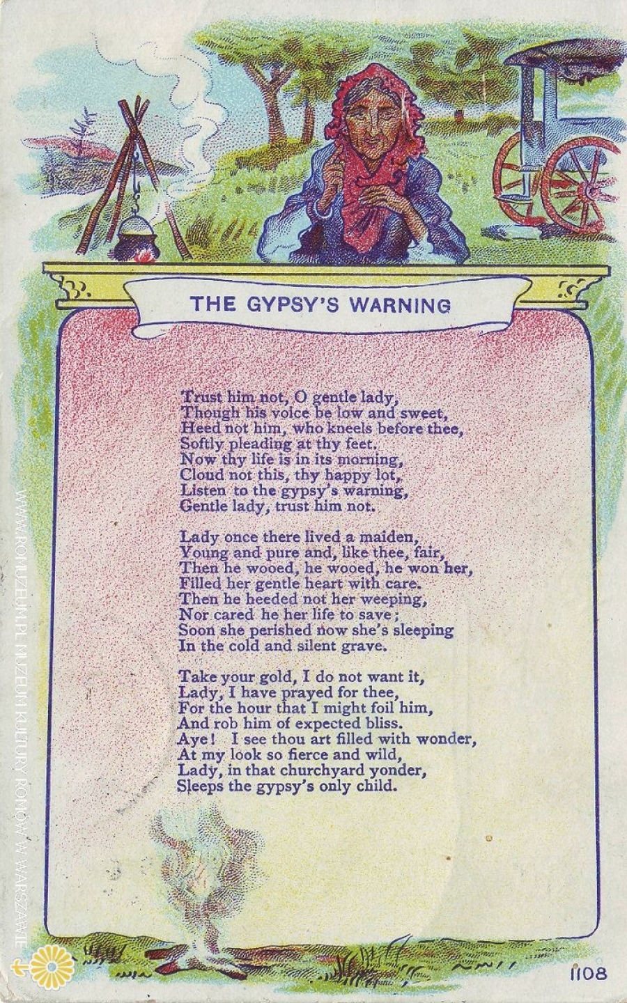 Cygańskie ostrzeżenie, The Gypsy's Warning, edit. Keystone Novelty Co. Mercersburg PA, bez obiegu, 1914