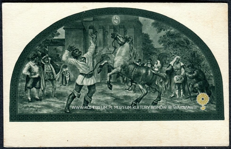 W krużgankach Mariaschein, (obecnie Bohosudov, Czechy) Im Kreuzgang Mariaschein. Einem Spötter des Heiligtums ereilt die Strafe der Erblindung (1610). Gem. v. Karl Krattner, jun. Prag. stempel: Na památku z Bohosudova, verlag: Buchhandlung des C. D. Preßbundes, Mariaschein, Bild 32., bez obiegu, circa 1920