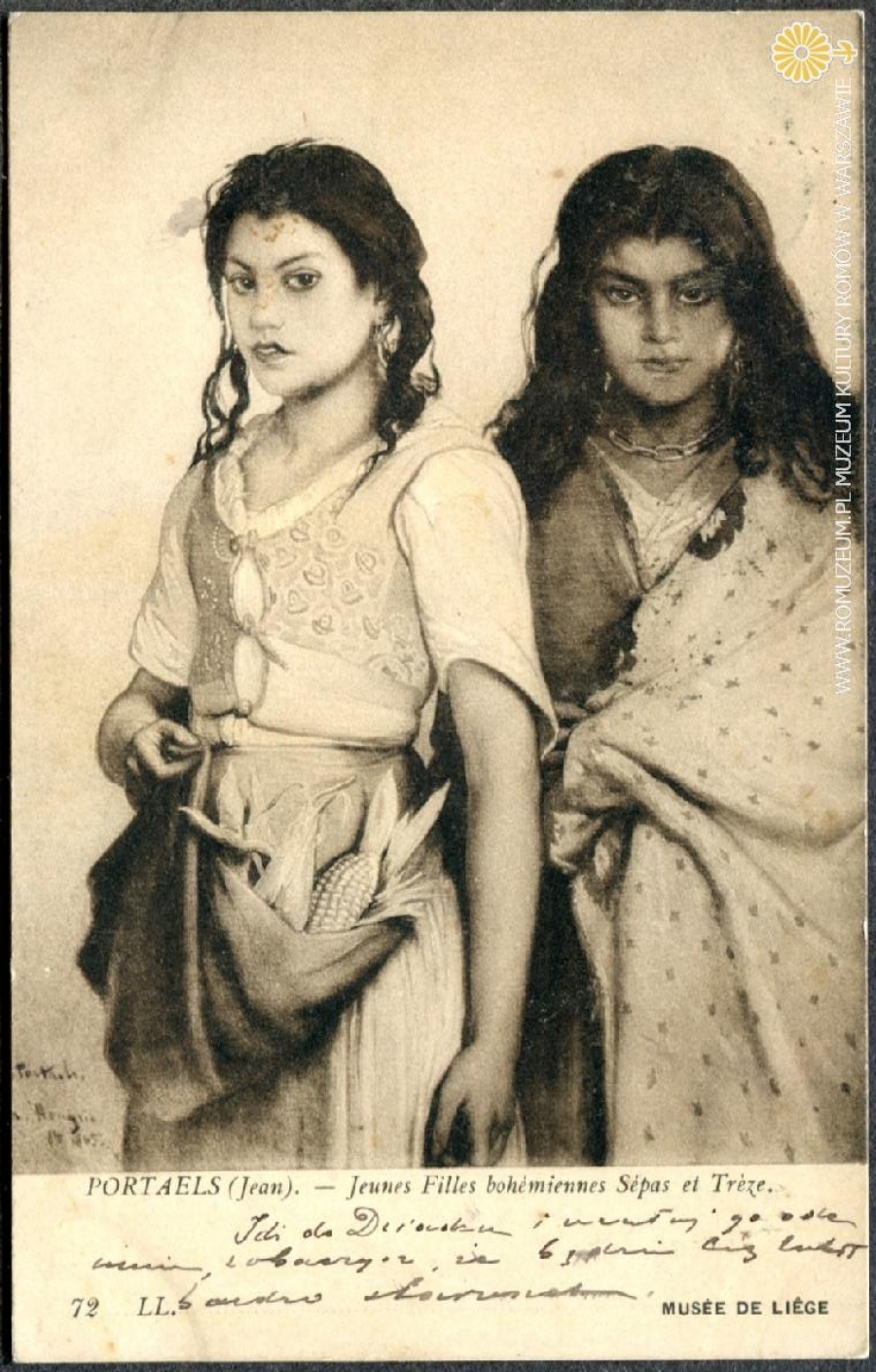 Młode Cyganki Sepa i Treze (Teresa?), Jeunnes Filles bohémiennes Sépas et Tréze, Jean Portales (*1818 – †1895), Musée de Liége, 72 LL. obieg 27 II 1910