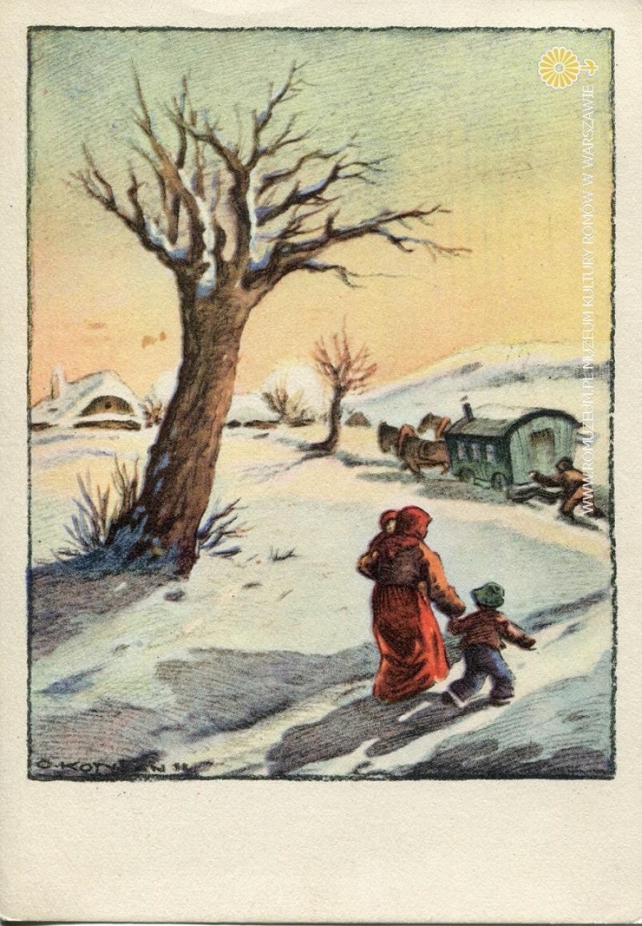 Zima, rys. Cyril Kotyšan (*11 I 1899 - †11 XI 1978 Praga), edit. Impressa., Czechosłowacja. Obieg 23 XII 1955