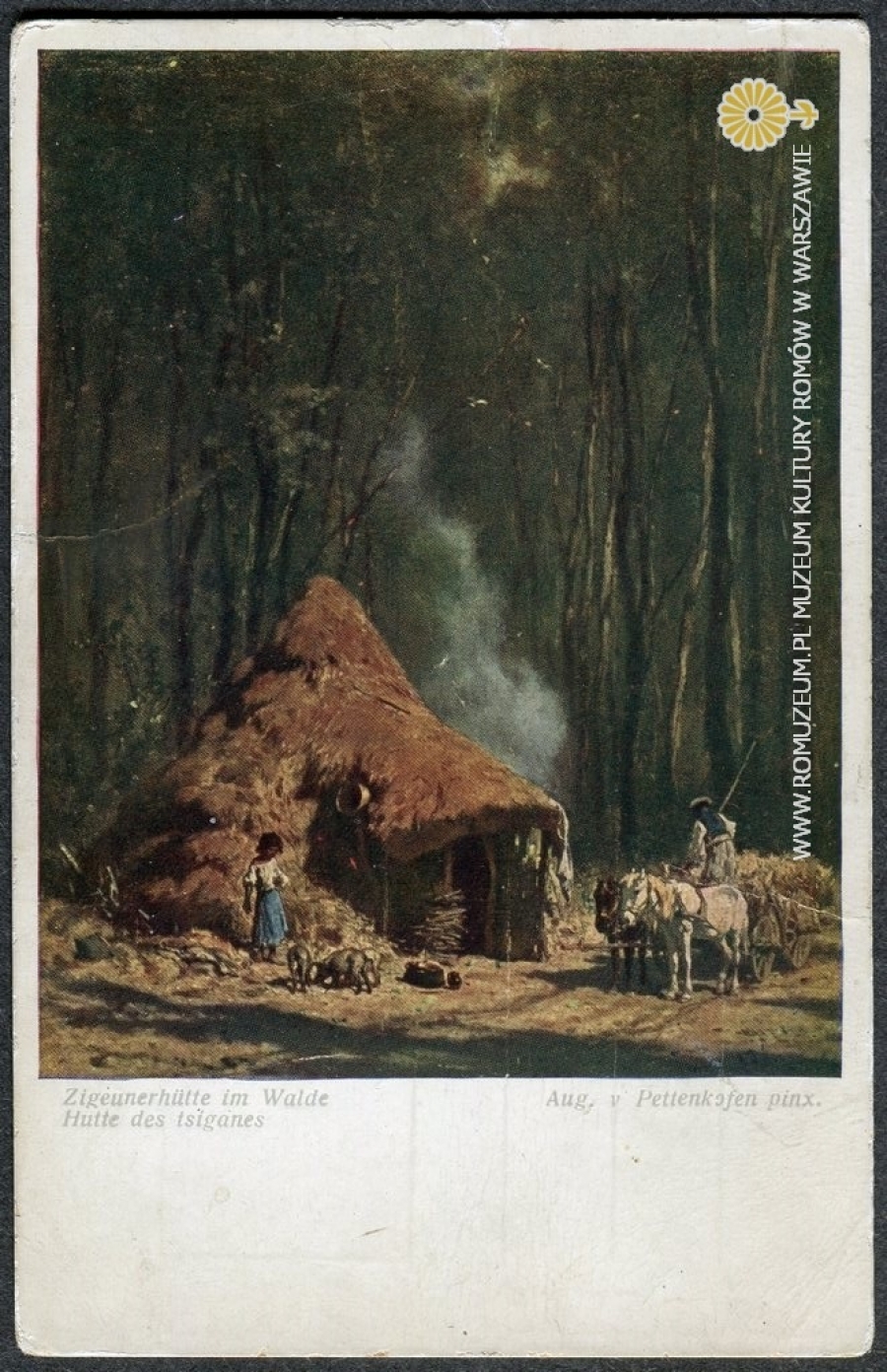 Zigeunerhütte im Walde, Hutte des tsiganes, Chata cygańska w lesie, Aug. v. Pettenkofen pinx. Aus der Sammlung l. Lobmeyr, Serie 197-6, Wiener Kunst, printed in Austria, B. K. W. I., bez obiegu, circa 1915