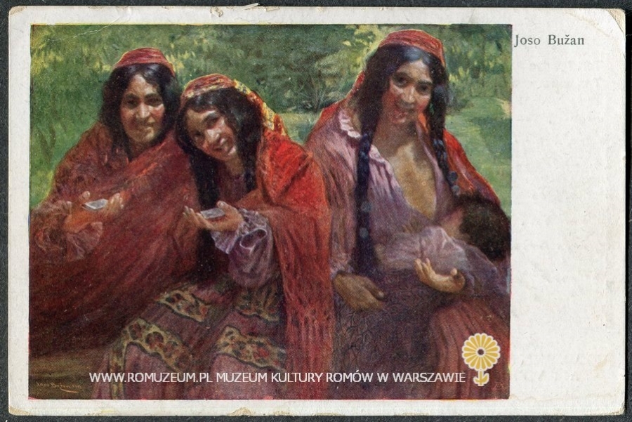 Tri ciganice. Trzy Cyganki, Joso Bužan (*21 XI 1873 Sisak - †1 VIII 1936 Zagreb), Jugoslavenski Umjetnicy, Edition Čajkovič Zagreb, obieg, stempel nieczytelny, ręcznie adresowana Zagreb 21 XI 1921
