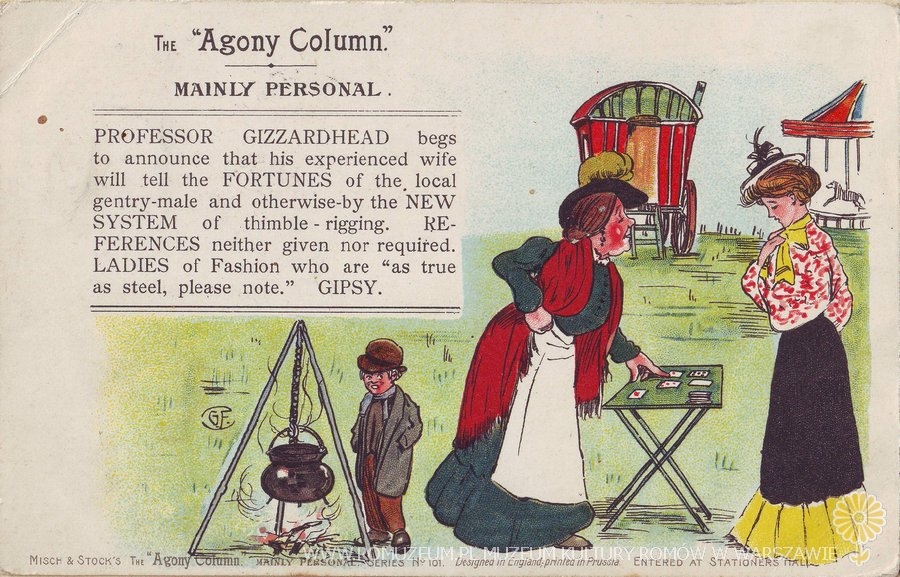 Gipsy Teller, Misch & Stock`s The „Agony Column”. Mainly Personal. Series No 101. Designed in England, printed in Prussia, obieg 5 VIII 1910